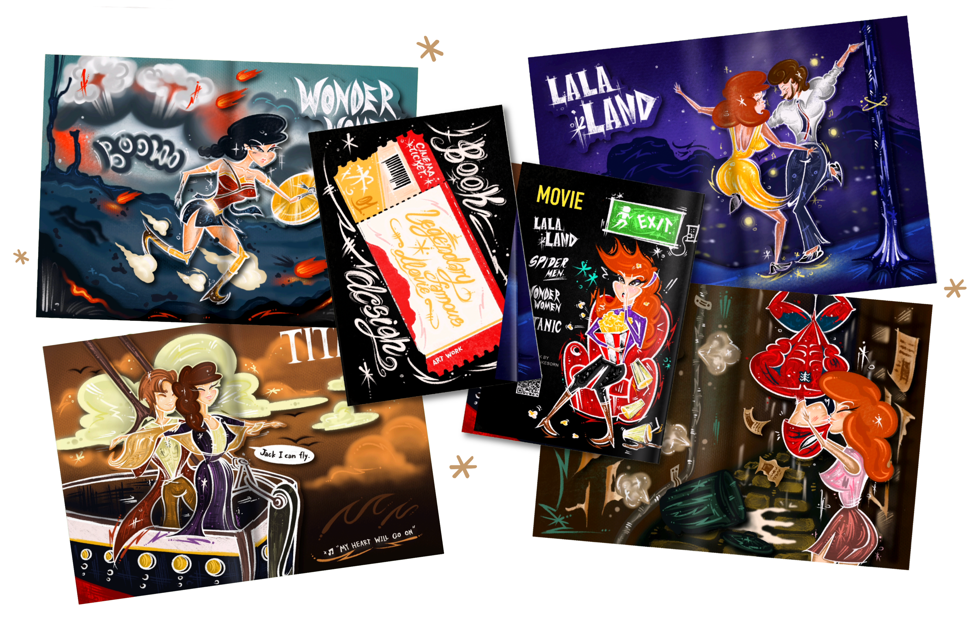 A celebration of cinema through the stroke of a pen, this collection brings iconic movie scenes to life as illustrations. Each piece conveys the emotion, excitement, and memories from the screen onto paper, allowing film lovers to experience their favorite stories in a tangible, artistic form.
